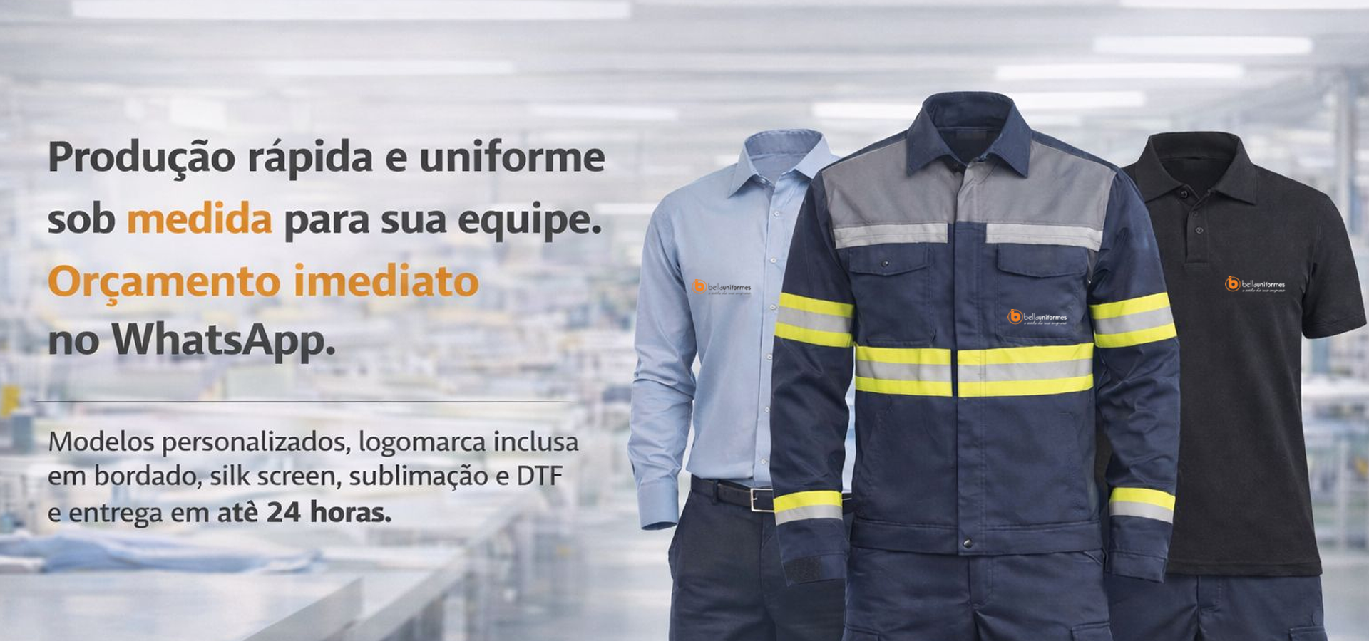 Contando com mais de 10 anos de experiência, a Bella Uniformes atua no ramo de confecção de uniformes profissionais administrativos, operacionais e camisas promocionais. Desejando sempre oferecer experiências descomplicadas, transparentes e próximas à cada cliente, nosso maior foco é transmitir a melhor imagem de sua empresa para o mercado.